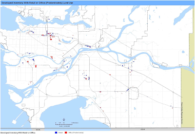 As noted, some of the industrial land base is used for offices and retail uses. This is due to both the Mixed-Employment Zone, historical reasons, municipal zoning, and inappropriate land-use.